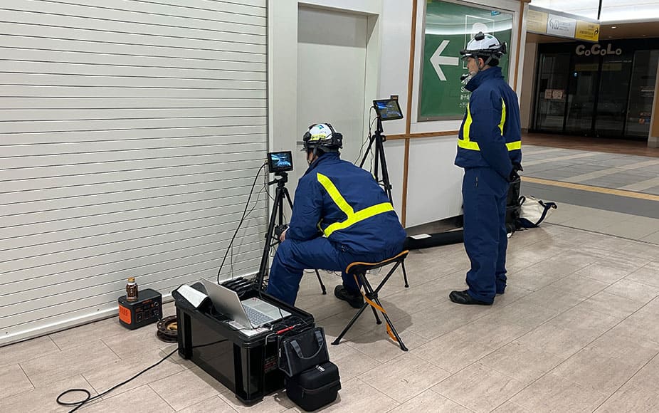 周囲の理解や機体操縦の難しさ、初めてのことばかりでメンバーも限られる中、なぜそこまでしても導入したかったのか。「他社と違うことができると思ったんです。人が入ることが困難な天井内を自由に見ることができたら、大きなアドバンテージになる。漏水や破損箇所を特定したり、修繕工事の計画に役立てたり、フライト目的とは異なる不具合箇所を見つけることができたりと多くの可能性があるなと。メーカーの担当者が飛ばした事例はありましたが、当社のようなメンテナンスを生業としている人間が飛ばすことに意味があると思いました。駅設備の知識がある我々なら、異常や不具合にいち早く気づくことができる。不具合が出やすい箇所がわかる。これはスマートメンテナンスの先駆けになる!と。」