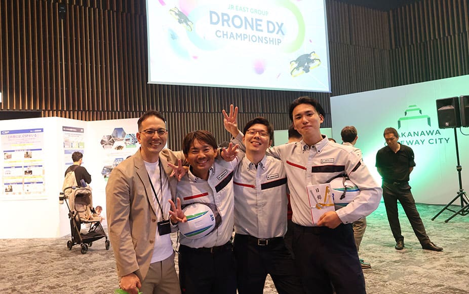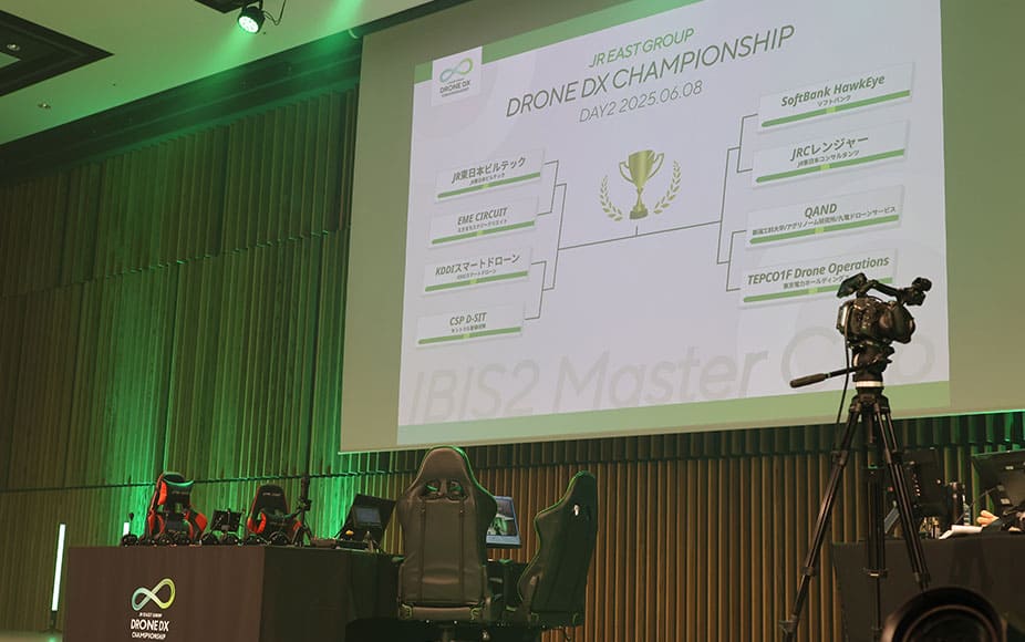 そんな当グループに今年3月下旬、まちびらきをしたばかりのTAKANAWA GATEWAY CITYにて開催される「JR東日本グループ ドローンDX CHAMPIONSHIP」への出場オファーがかかった。本イベントはIBIS2を業務で使用する企業が一堂に会し、操作技術とスピードを競い合うタイムトライアル形式の競技大会ということで、2年以上に渡りIBIS2を使用している当社としては声がかかった瞬間、グループ全員が嬉しさで胸を高鳴らせた。早速参加が決まったものの、猶予はたったの2か月ちょっと。実務とは異なる部分も多々あり、急ぎで飛行訓練を始めた。