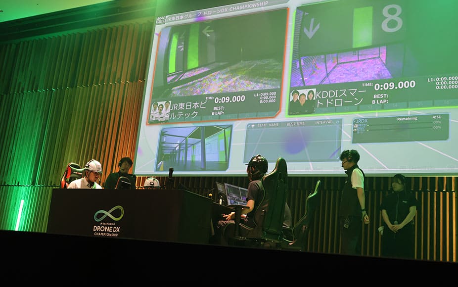 模擬練習はしてきたものの、実際のコースをフライトするのはもちろんはじめて。最初は苦戦していたものの、徐々に感覚を掴みリハーサルが終了。いよいよ本番を迎える。